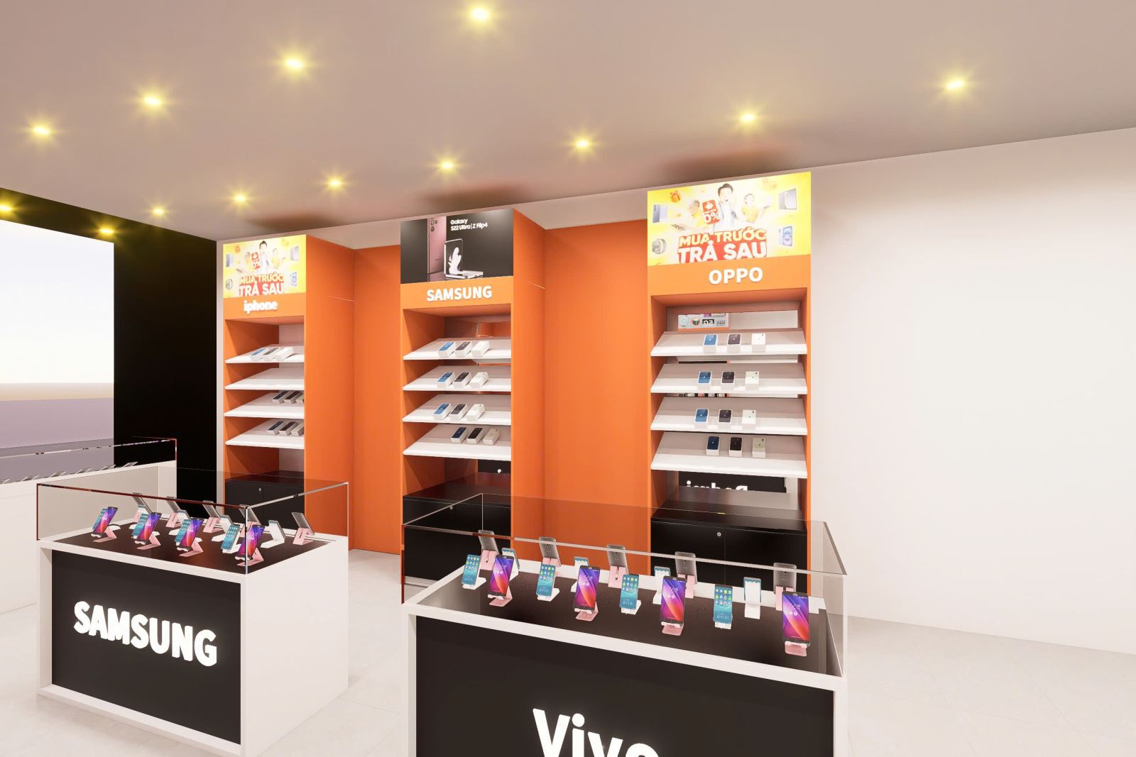 Điện thoại là sản phẩm công nghệ có giá trị cao, vì vậy không gian bán hàng cần đảm bảo: