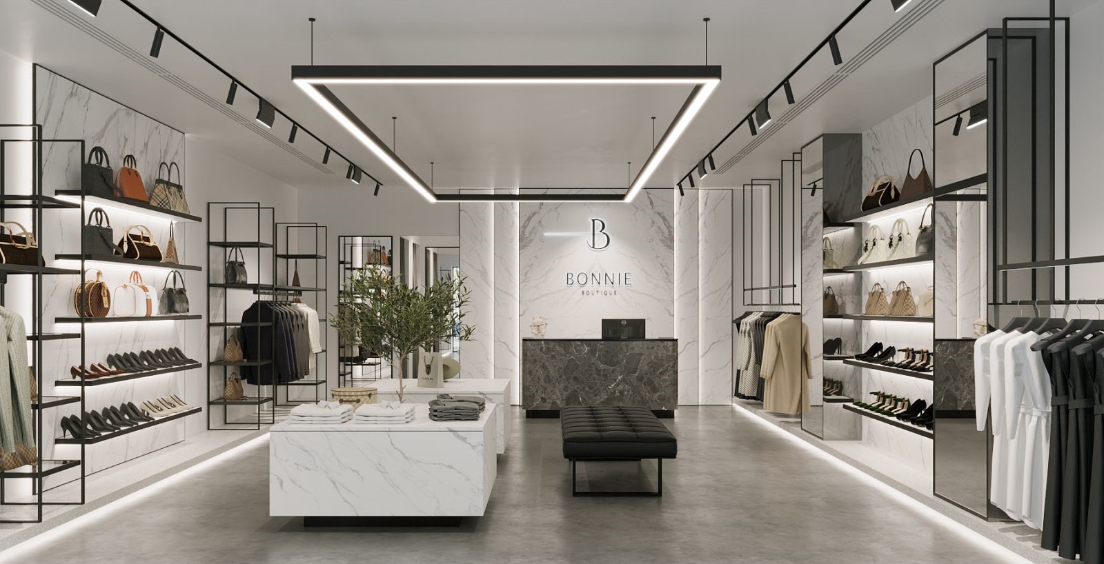 Phong cách hiện đại, tối giản giúp không gian trở nên thông thoáng, tập trung làm nổi bật sản phẩm.